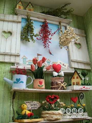 在窗口处挂了些小干花。